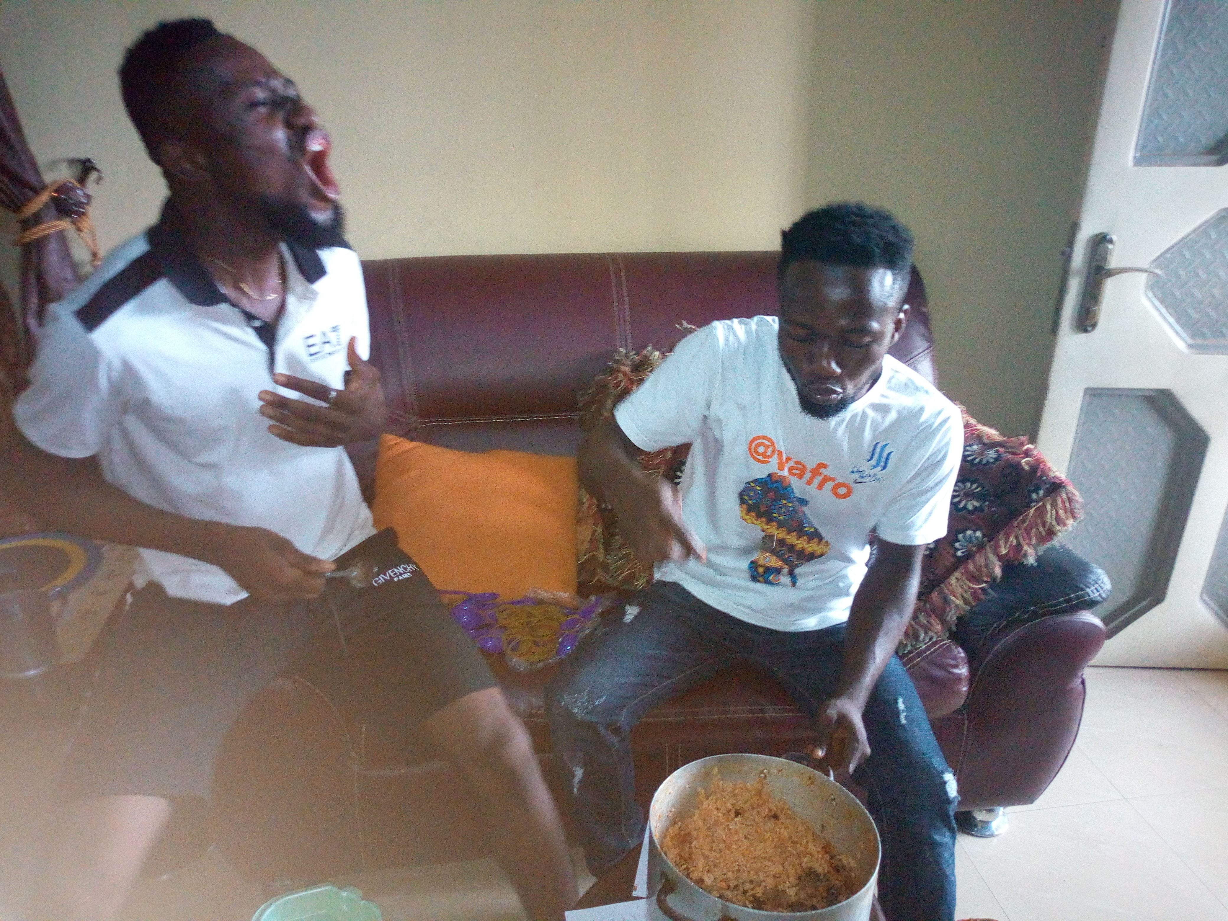 Not in the middle of giving out the food we prepare i was actually behind camera when i sighted one of Nigeria great artist that has changes life's also with his music, Oligbese 4 sell i wouldn't exitate to call @prettyjules158 for a selfie with him, Hmmmm it was at the central of the scene, i was actually behind camera and i said to myself it won't be right if i just go home without having a selfie with this great man.