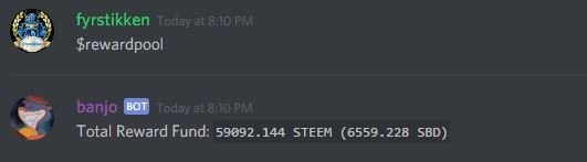 This evening on discord.steemspeak.com, the Busy.org CEO @ekitcho stopped in. The conversation on @steemspeak was on the subject of the rewards pool .. with resident wizard @inertia having recently implemented a cool new feature, .. the in-chat $rewardpool command, which shows you the current available reward pool - or the total amount in STEEM Dollars that can be awarded to all the posts made, within a given period of time (24 hours?).