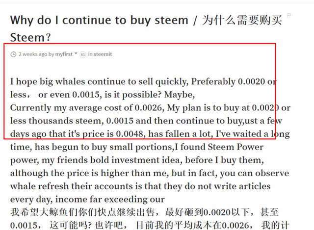 A high probability event, please attention to the activities of large whales steemdown on to shot Please wait them to stop Power Down, then it will be stable. 今天回到家,看到Steem to 0.0015, 非常高兴,大约2周前,当时价格0.0026,写了这篇文章, https://steemit.com/steemit/@myfirst/why-do-i-continue-to-buy-steem-steem