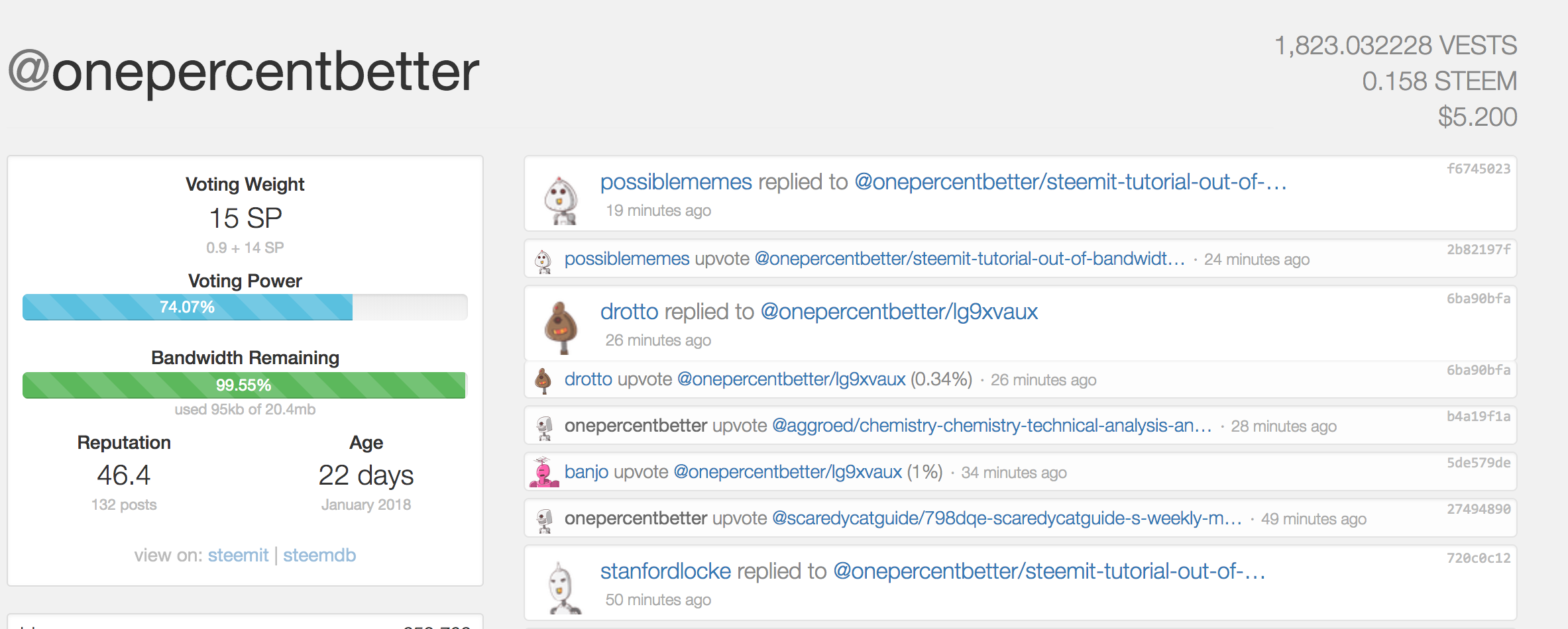 Yes my opinion also ☺️ still I think some whining is in order as when I went to bed last night I had 90% or more voting power and bandwidth and when I woke up this morning my bandwidth was gone so instead of jumping around I decided to observe it and by 3 hours or so I found that I have over 80% bandwidth and my voting had gone up to 100% so what's up with that? It would seem that these bandwidth issues would have logical actions connected to them but they don't so I'm whining smiles