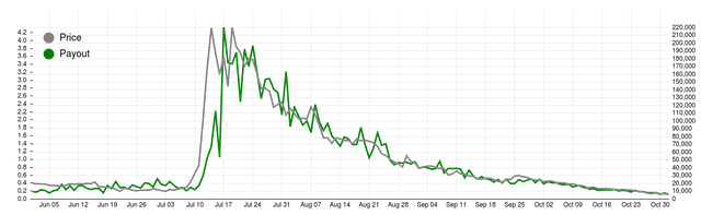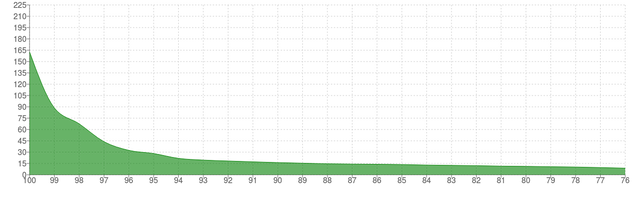 This is a breakdown of post payouts per percentile. Only top 25% of post payouts are visible on the chart.