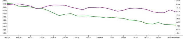 | Yesterday | 7 day Avg. | 30 day Avg. | Chart max | Chart min | |