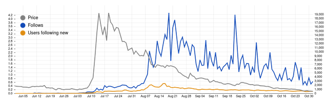 - Users following new: number of Steem accounts that have followed one or more users on this date