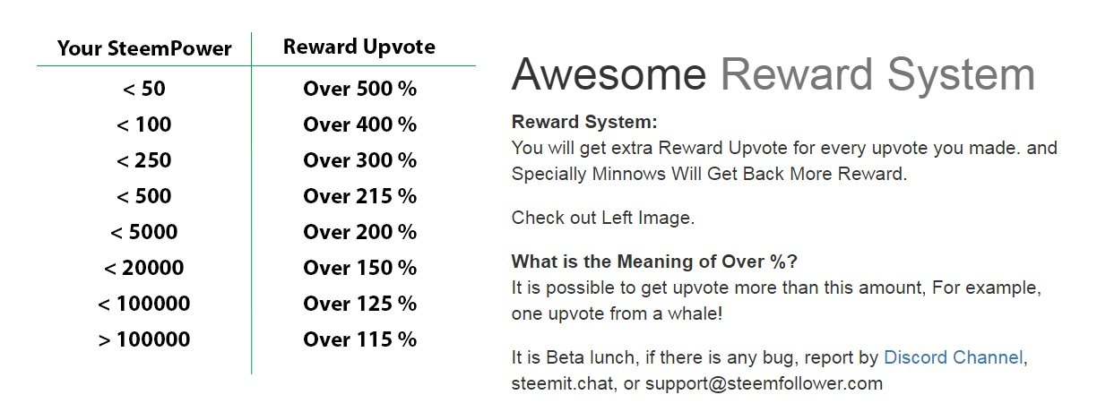 For every Upvote, depending on your Steem Power you get back over % (see in the picture above) in Upvotes.