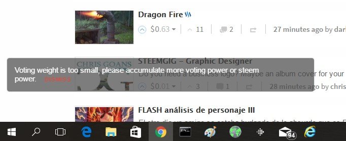 Hello Everyone--I'm trying to Upvote posts...my stats say my vote power is at 46% but when I click to upvote, I get the 'voting weight is too small' message... Any ideas as to why I am having this issue?