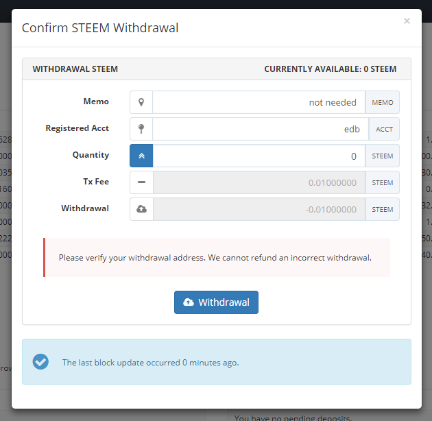 As you know well that Steem had reached 0.00098228 BTC in the past 24hours, I definitely do bought lots of it on Bittrex. I then headed here on Steemit and went straight to my wallet, clicked on ""Buy Steem or Steem Power"" and now wanted to transfer my steem from Bittrex to my Steem wallet.