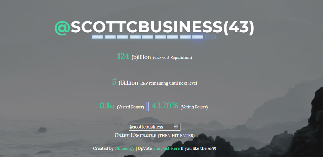 I always use http://steem.cool/ to check my reptuation and power! It's a clean UI that gives me a good idea of how my progress with reputation goes. It sort of visualizes reputation as if it were EXP in a video game. To check you just type the url then your username so mine is http://steem.cool/@scottcbusiness