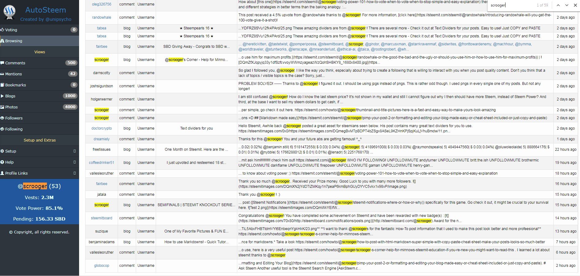 Autosteem Was created by @unipsycho and I send a big shout out to him for making this awesome site. It is loaded with features but I will only be looking at the mentions section today. Let's go!