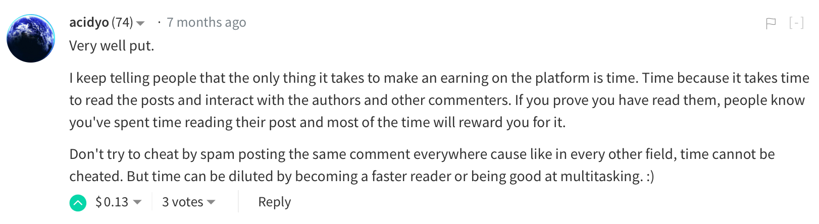 When you have a good and authentic following, you'll find that all of your posts get a good number of upvotes, and you'll earn a pretty nice income per post compared to if you post 10 times a day and pray that one of them trends.