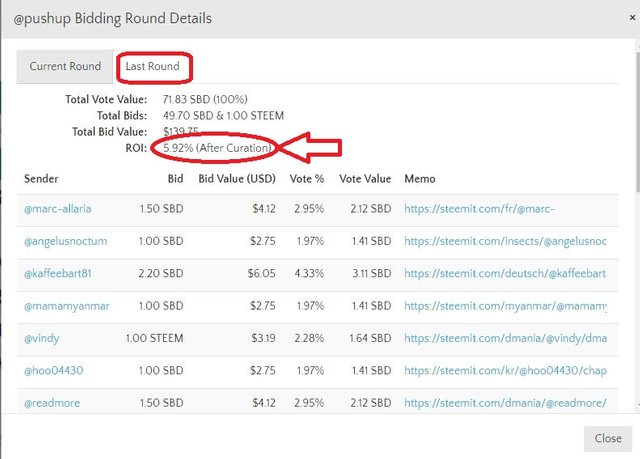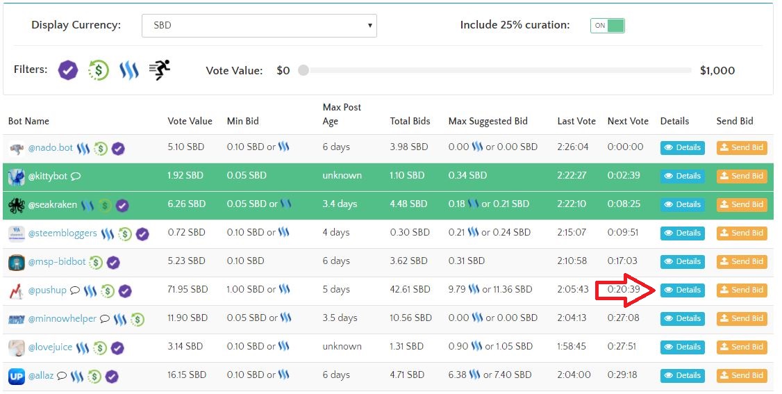 And there is a little more, check the voting power of the bots before you use them. You can also track the bots those vote by bid rounds from Steem Bot Tracker where you will gets to see the previous round bids and the profitability percentage of each bot.