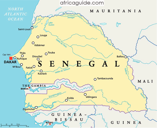 Gambia retreats like a kind of semi-enclave in the interior of the Senegalese state territory and thus separates the southern and northern parts of Senegal.