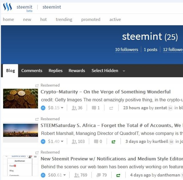 I believe, in our collective effort to attract new users to STEEMIT, individuals having the option of "cleaning up" their past works, and separating resteems, would make for a much more streamlined, high-quality experience!