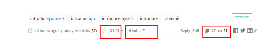 I got Total 9 Upvote and 21 Post See and 17 Comments from All members .