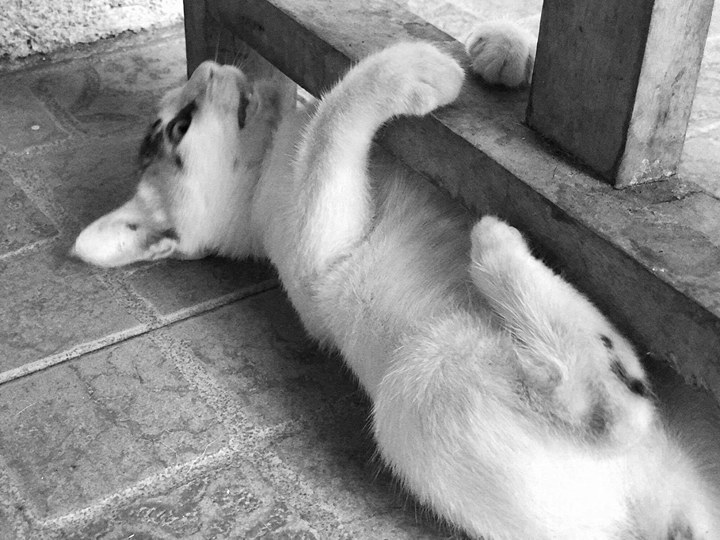 Sometimes, I wonder why she dislikes laying beside me because she runs away especially when she hears noises. There are many times she doesn't like to run but she plays my moving hair, toes, and hands so I place her in the other place. My dogs are enraged to Suki for disturbing their naps so they run away.