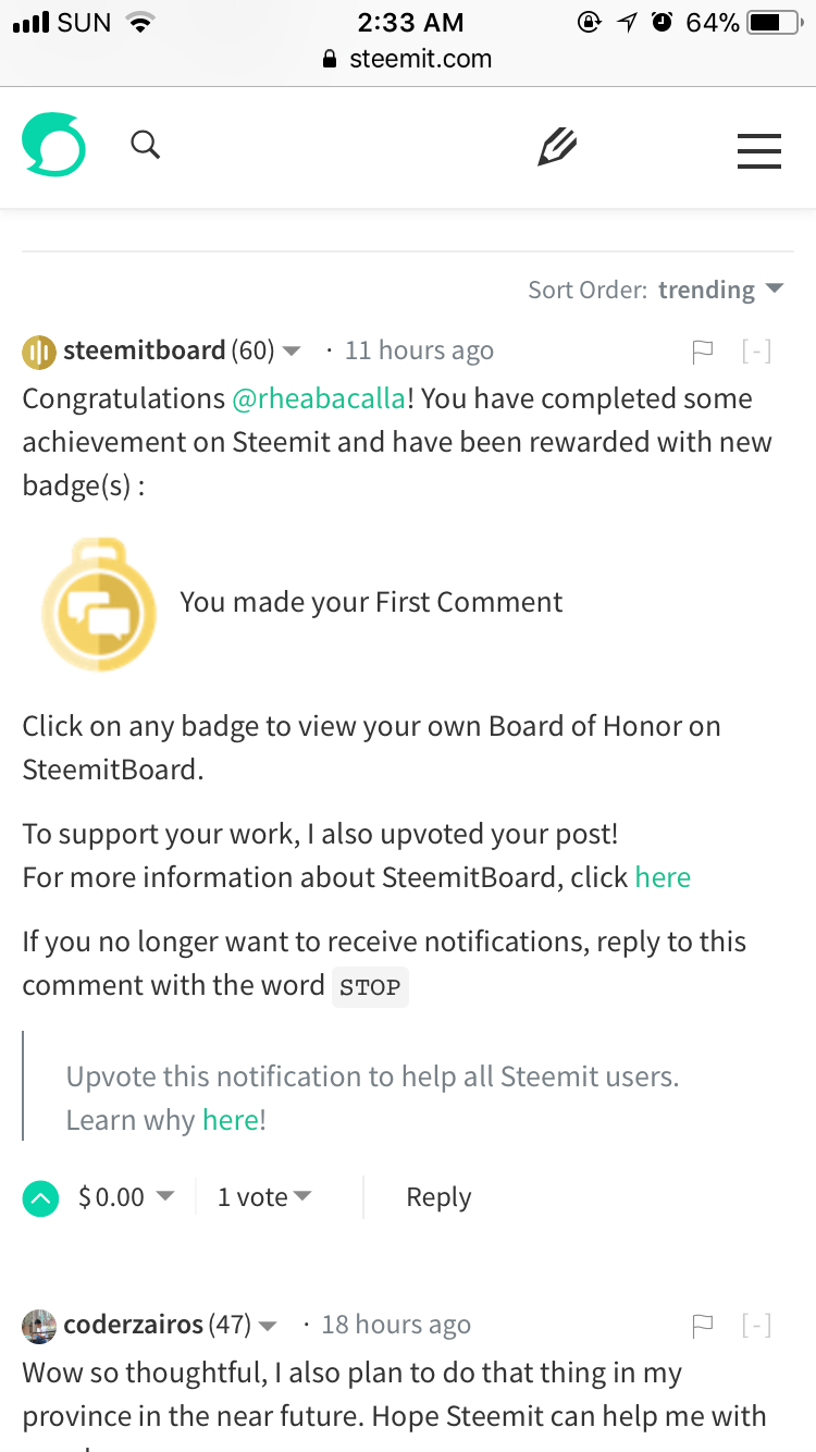 You are viewing a single comment's thread from:RE: SteemitBoard - Witness introductionView the full contextrheabacalla (35)in #steemitboard • 8 years ago Thank you for sending me a notification of my post .. i have upvoted the notification ☺️