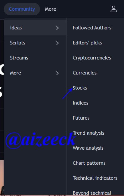- Community: This is second to the last main feature of tradingview with four (4) different sub features which are Ideas, Scripts, Streams and More.