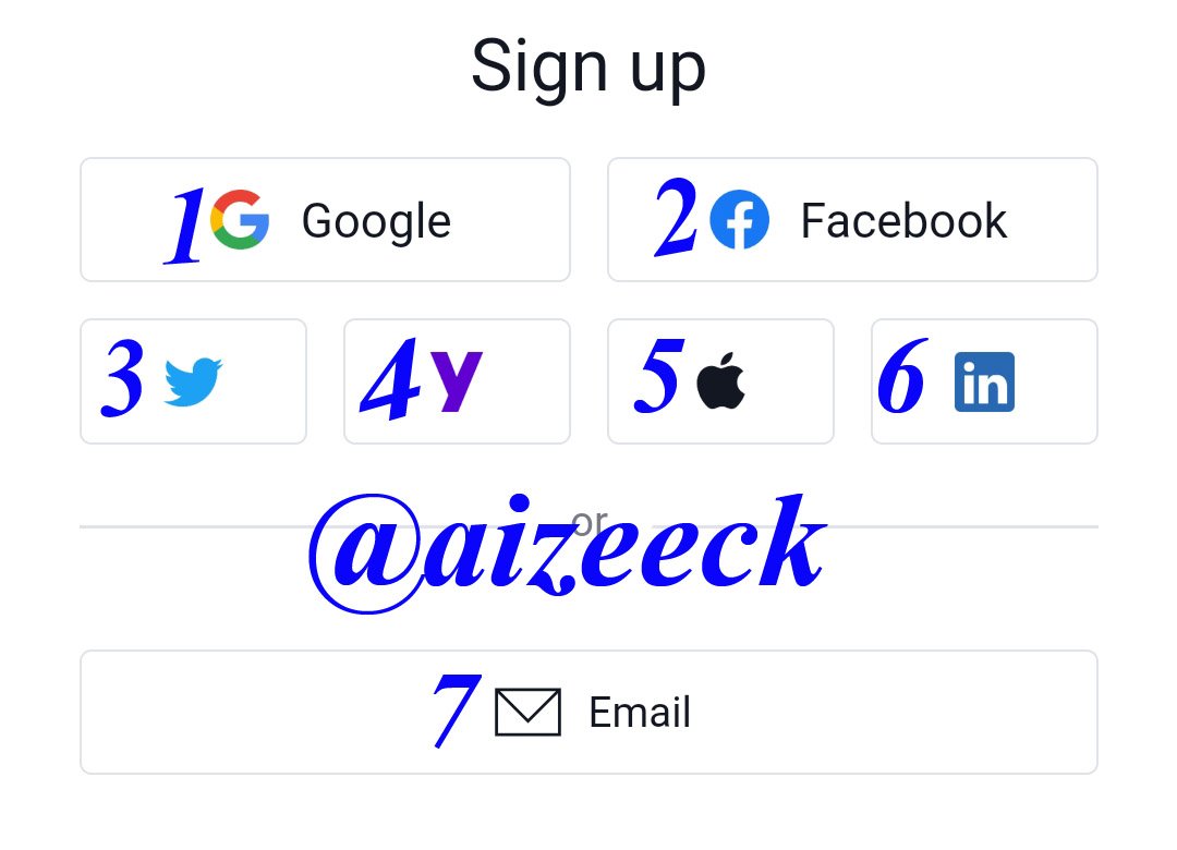 It opened the page for sign up. Here too have various sign up options, about seven (7) as shown in the picture below, in which one can sign up with. I signed up with email which is the last option (7) on the page.