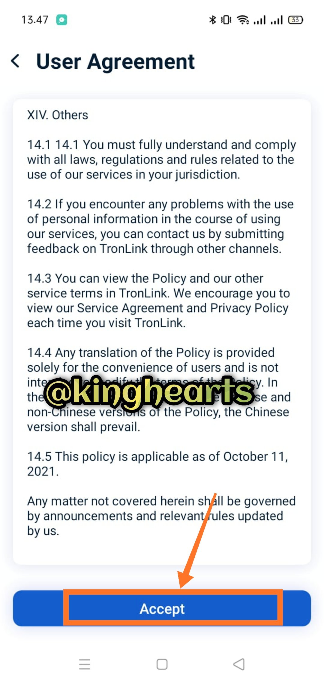 - Step 4 - After you click create an account, later you will immediately exit the user agreement will appear, you read everything first then click agree at the bottom.