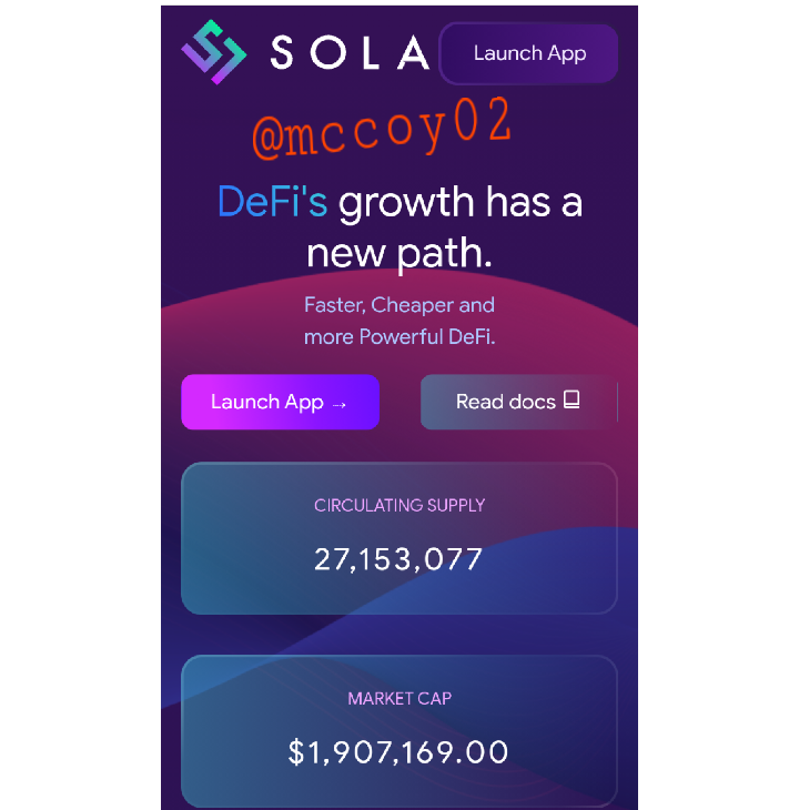 Sola platform is a DeFi project built on Solana blockchain the project token was issued on 9th August 2021 although the project is not yet popular in the DeFi space it has multiple earning program for it users.