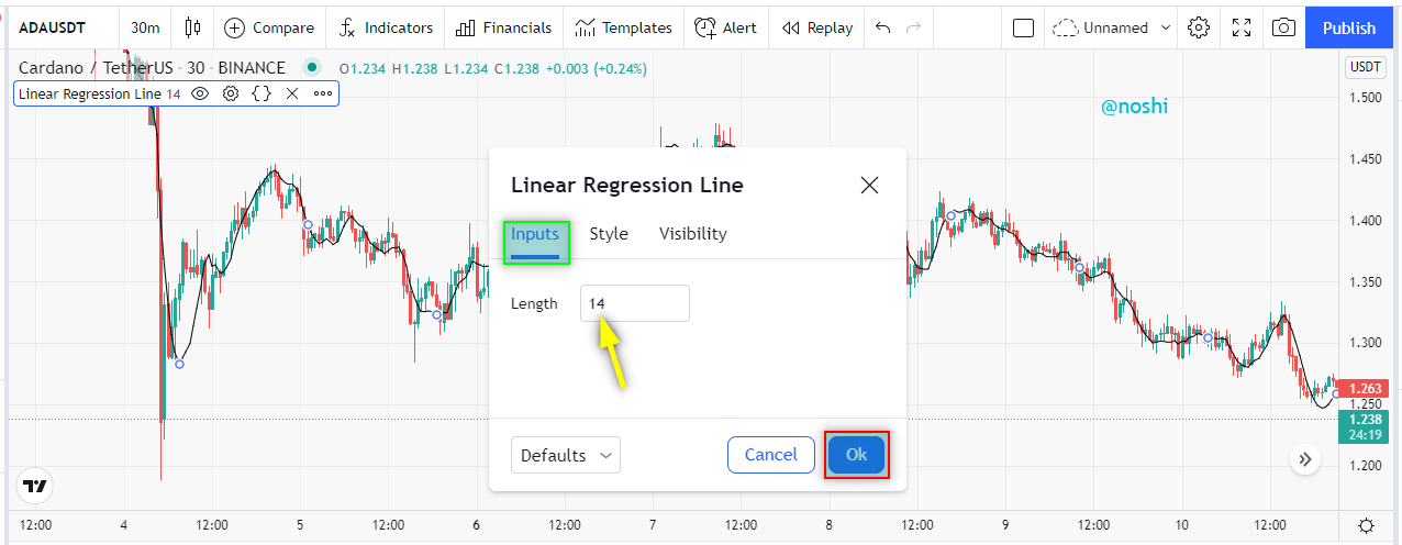 There are many platforms where we can see the chart of any asset and do technical analyses by applying the different tools on the chart. I will apply the Linear Regression indicator on TradingView.com. To apply the indicator on the chart, you need to follow the following steps.
