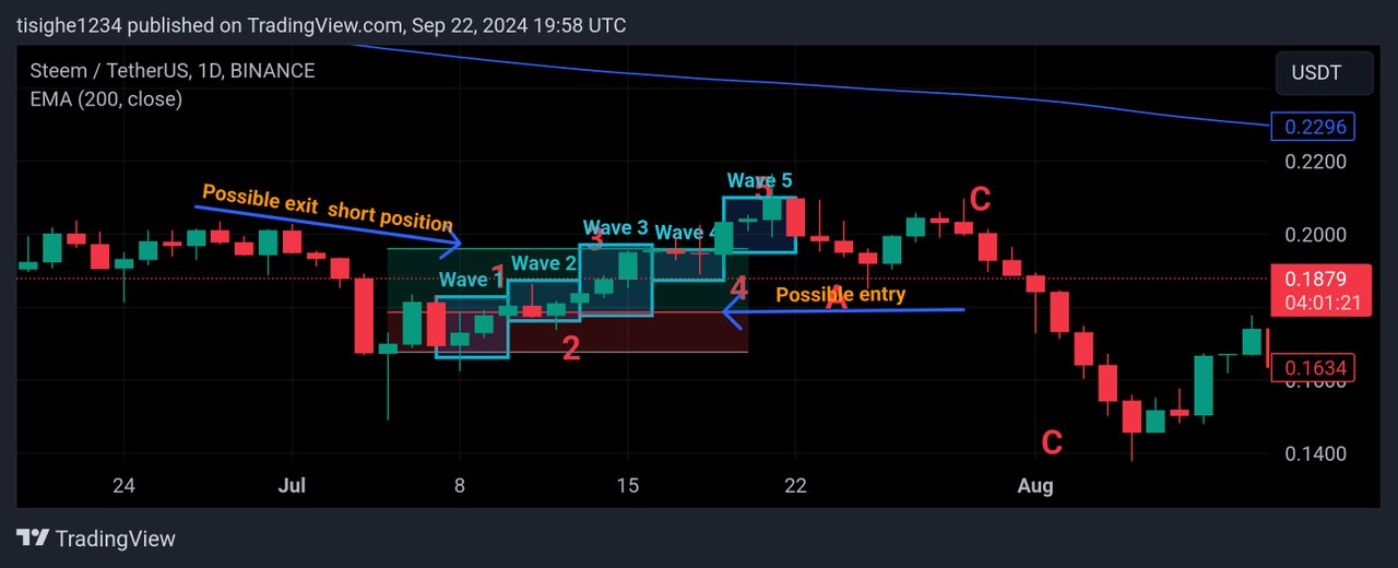 Wave 1: A strong upward move in the STEEM/USDT price.