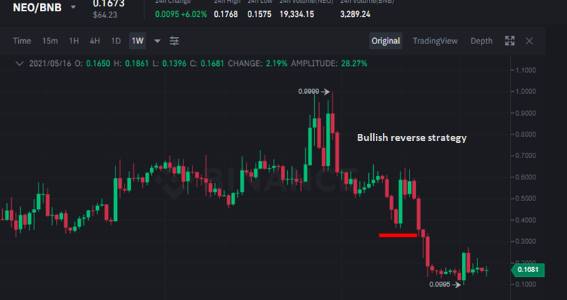 It is compulsory to complete a full day before taking decision in reverse strategy. At the end of the day, if the investors see that the opening market price is close to closing market price, they should buy the coins if its the bearish period or they should take the decision of selling their assets in bullish move. another thing to understand is always account those market where the change ratio is 20% up or 20%down.
