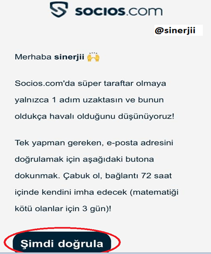 Step 6. I have activated the notification sent to my e-mail address. This is how my Socios.com account was verified.
