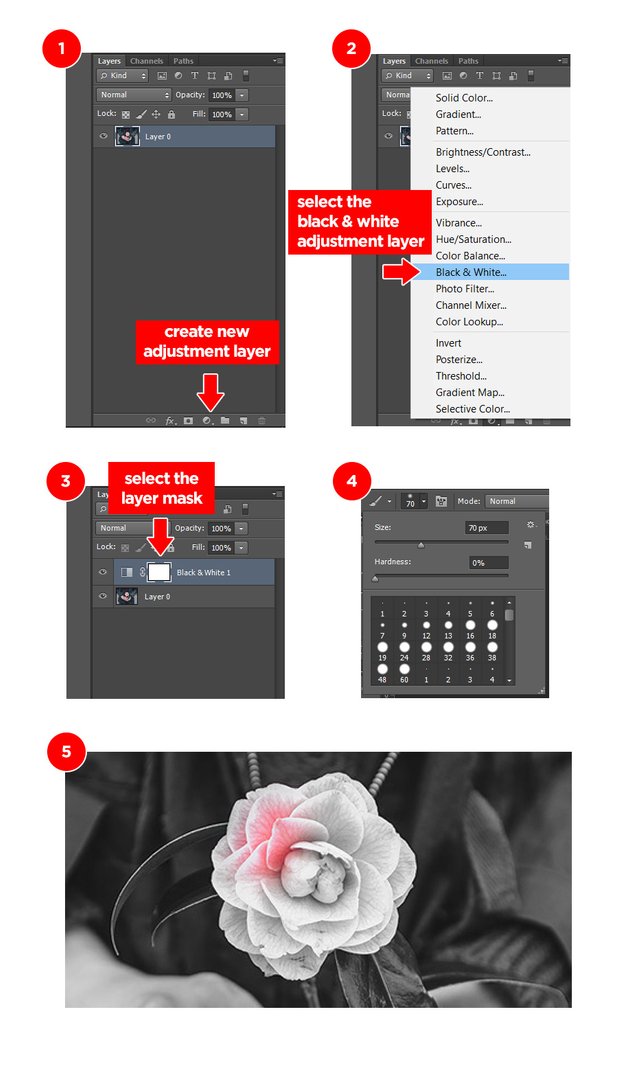Photoshop Tutorial - How to create a black and white image with a spot of colour effect