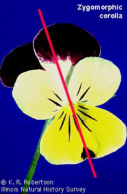 If a flower can be divided in to two equal parts by cutting through only one axis, they are known as Zygomorphic flowers.