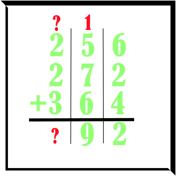 Very similar method as the previous addition methods; add ones vertically and carry forward if the sum is ten or more. But when we add three or four numbers vertically, many times the sum we get is more than even 20, in such cases 2 will be carried forward. Specially when we add four numbers there are many occasions when the sum of a column is more than 20.