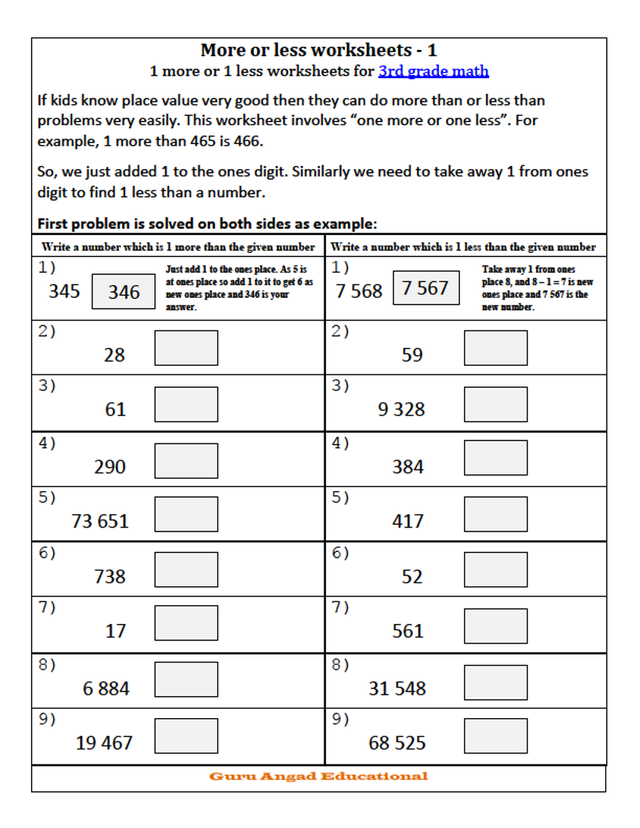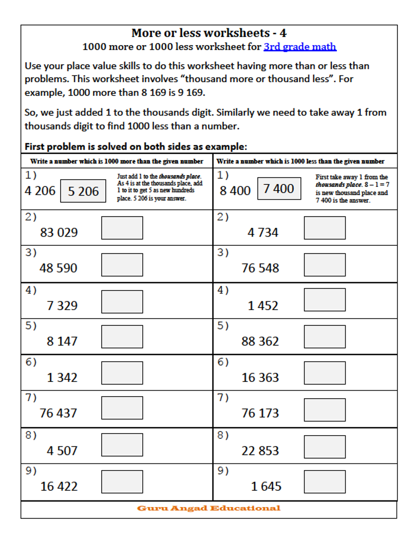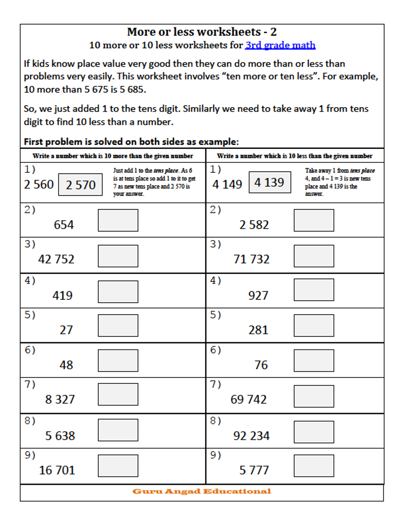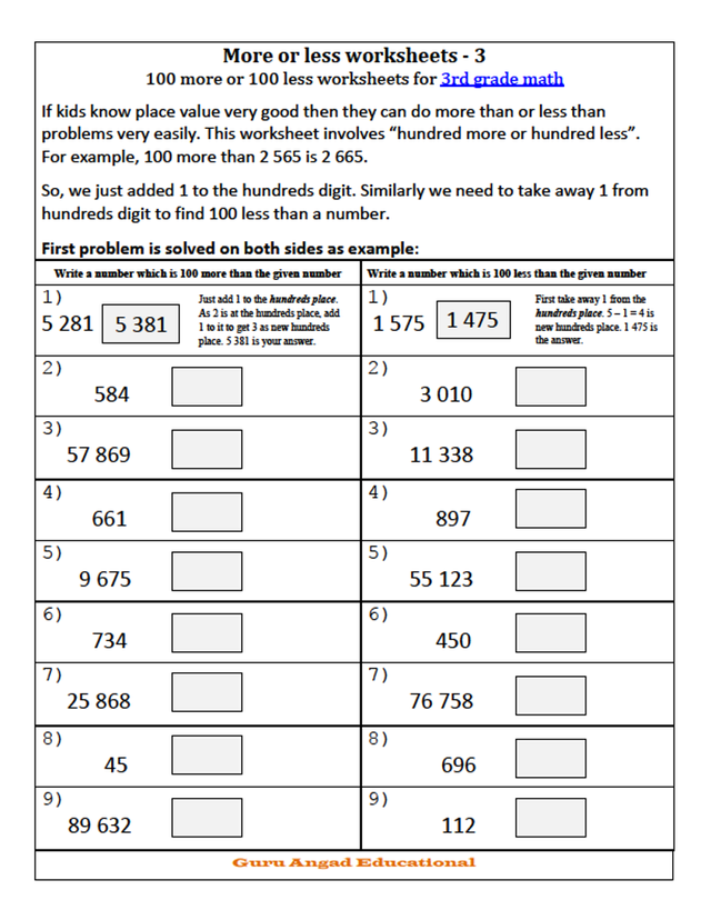 3RD GRADE MATH - FINDING GREATER AND SMALLER NUMBER WORKSHEETS