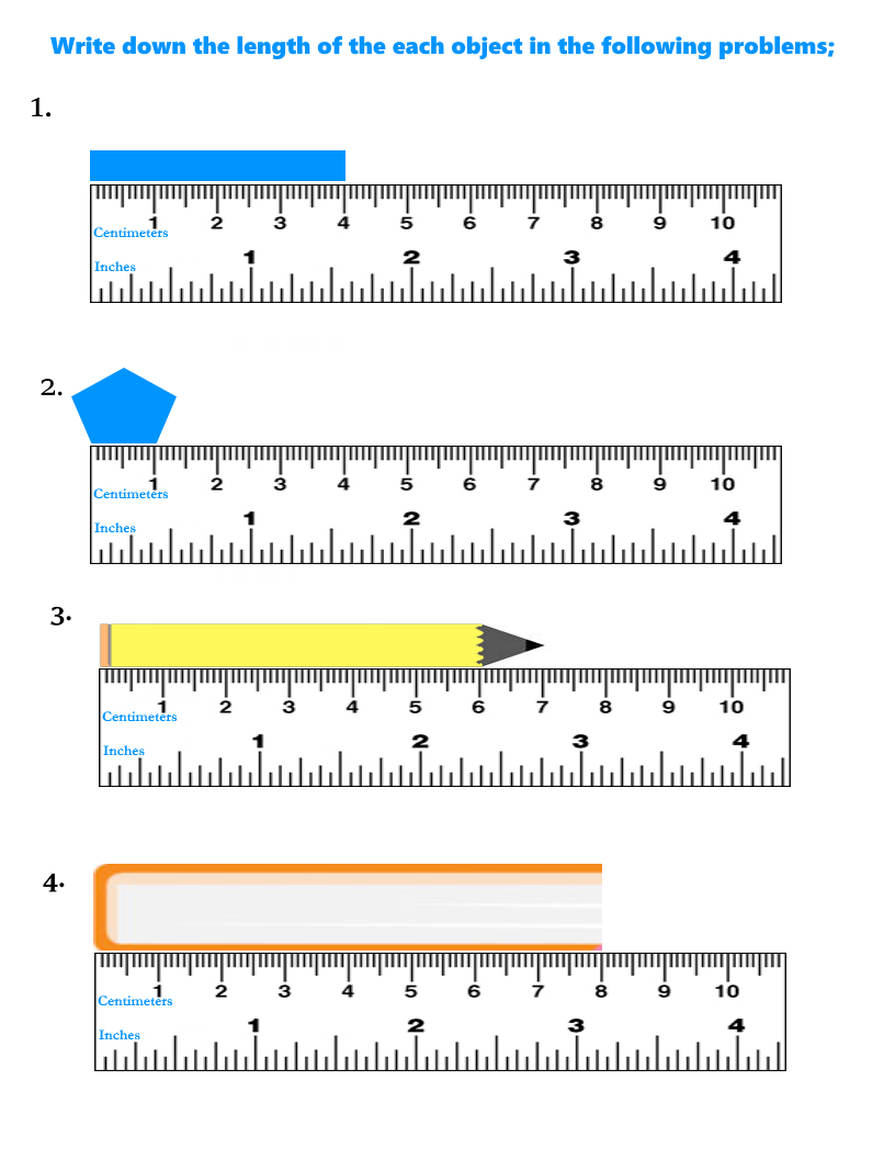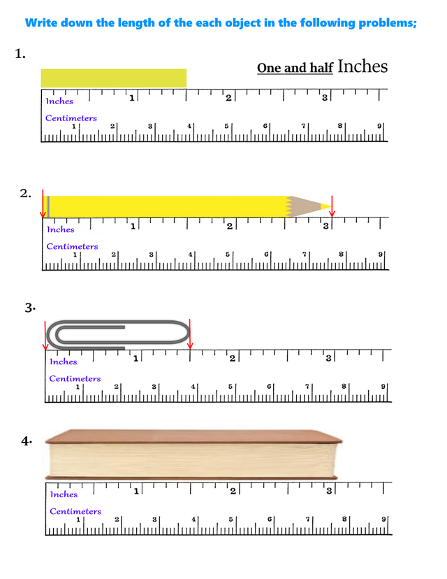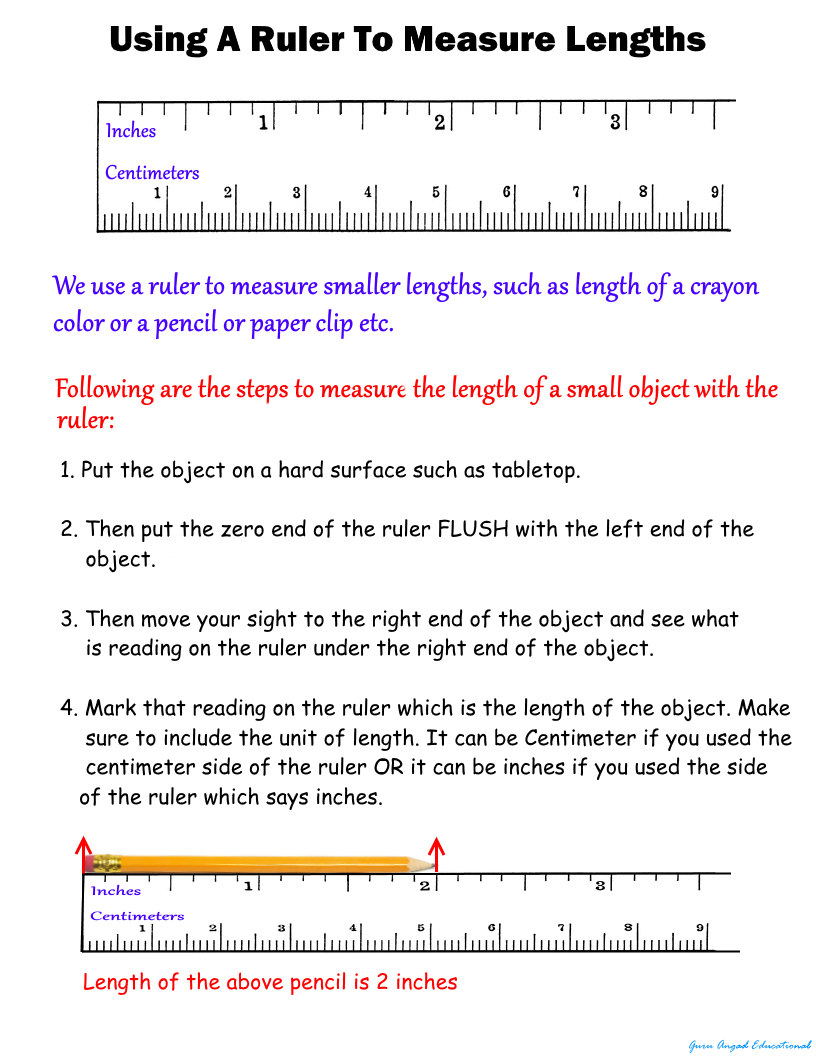 A ruler is a simple soft plastic or wooden strip having marking of units of measure of length. Most common ruler has Inches on one end edge and Centimeters on the other. We will use the same ruler to measure the lengths of some common objects. We will use both inch and centimeter edges of the ruler.