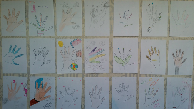 First they practiced with their partners using their palm and five fingers and then in small groups.