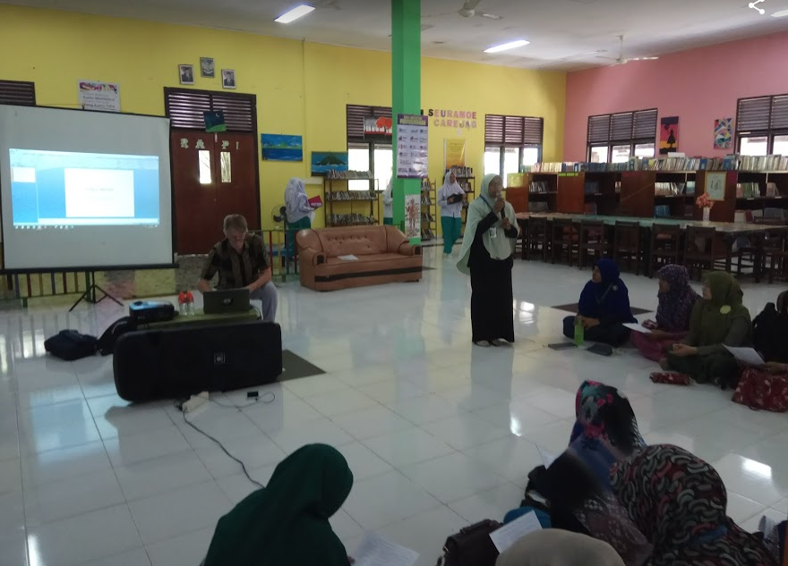 As performed by the teachers of Sukma Bangsa School of Lhokseumawe who regularly follow EFT learning activities (English for teacher), on every Tuesday. On Tuesday, February 27, 2018, they had the opportunity to receive teaching from a volunteer lecturer who came from Australia his name mr. Kevin Bain, to share knowledge in our school about English to teachers and students.