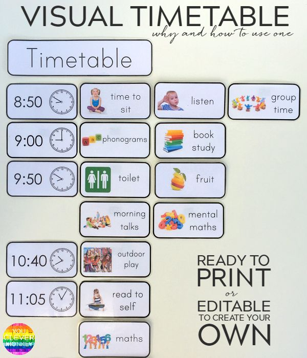 - Give them a schedule which has clocks on. This will help them to associate an activity with a certain time on the clock. Here is an example, it is a schools timetable but the principle stays the same.The example has the time in digital as well as analog time, but I will be making my sons schedule only with the analog time, we will later on add the digital time.