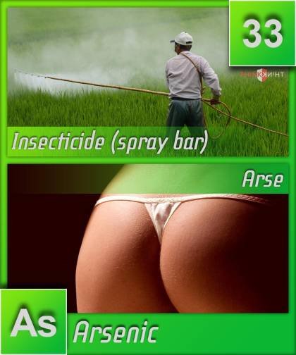 In the Visual Major System 3 = M. With that we can create the word Mummy. The thirtythird element Arsenic sounds like the word arse. The element is often used for poisonous insecticides.