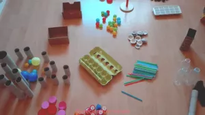 First stage: The materials to be used must be organized in an orderly manner and according to their characteristics. The atmosphere must be calm, there must be nothing to distract the children. All materials must be on the floor, so that children can have easy access to them.