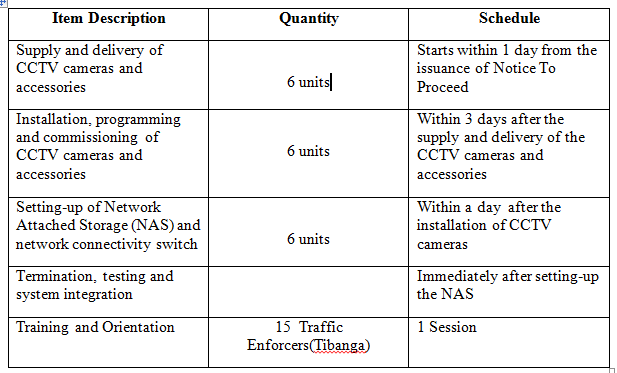 The delivery and installation of CCTV cameras were expressed as days stipulates hereafter the date of the issuance of Notice to Proceed (NTP).