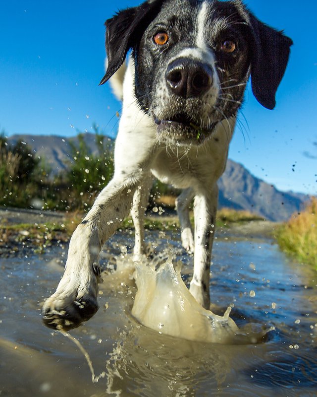 The dog continued and following through with curiosity bringing along some water for the ride. I guess the camera needed a little shower anyway. This photo made the whole thing worthwhile. This is my second entry into the Steemit Photo Challenge for high speed shots. Hope you like the freeze frame action.