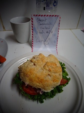 It is a lumpy one, but the bacon takes the edge off. Ok, last day to submit a terrible or ugly sandwich. Looking at what I have in the kitchen. The most random thing I have, which I can eat, is a packet of dried potato powder.
