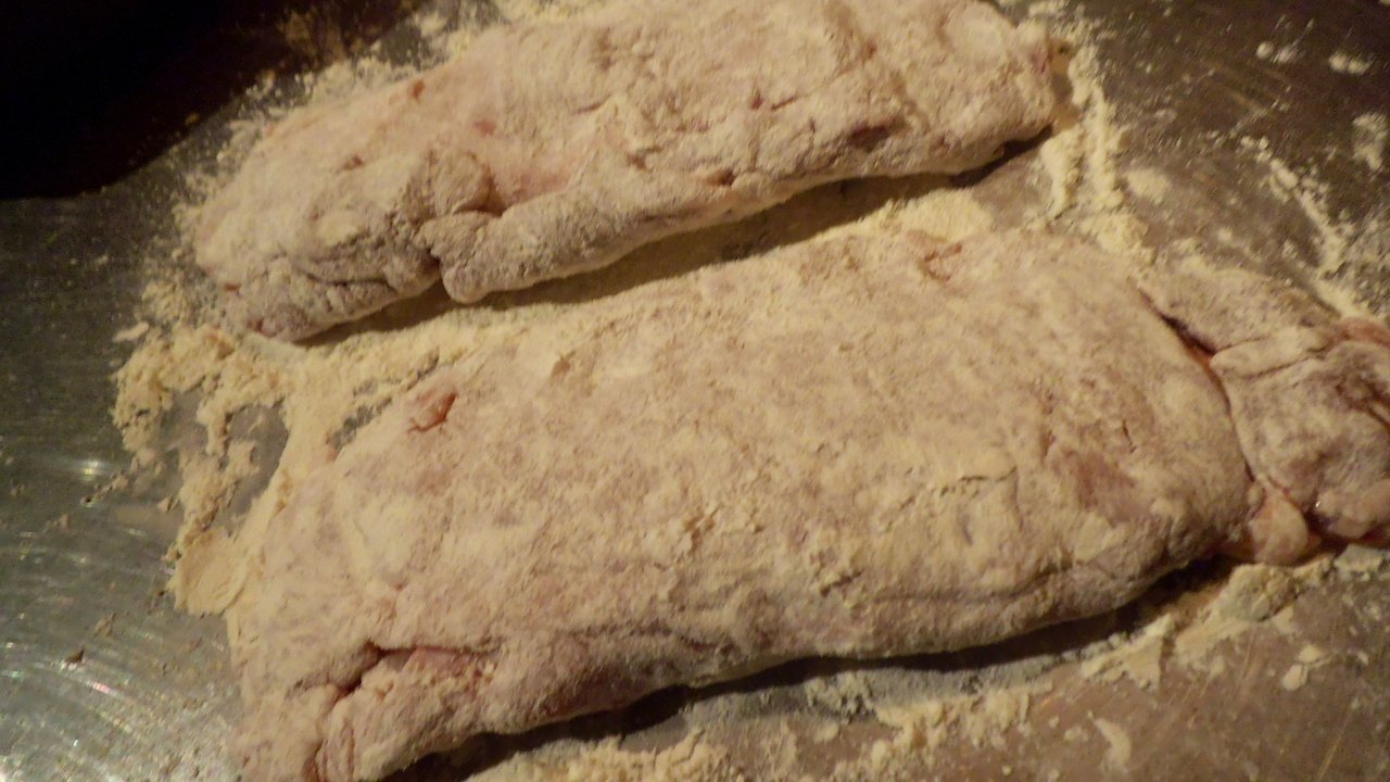 Butterfly Cut and then hit the Crap out of it, until as thin as possible. Fill with...
