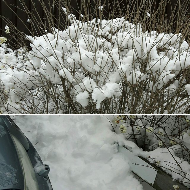 At the parking lot.. Much snow and bushes were beautiful!
