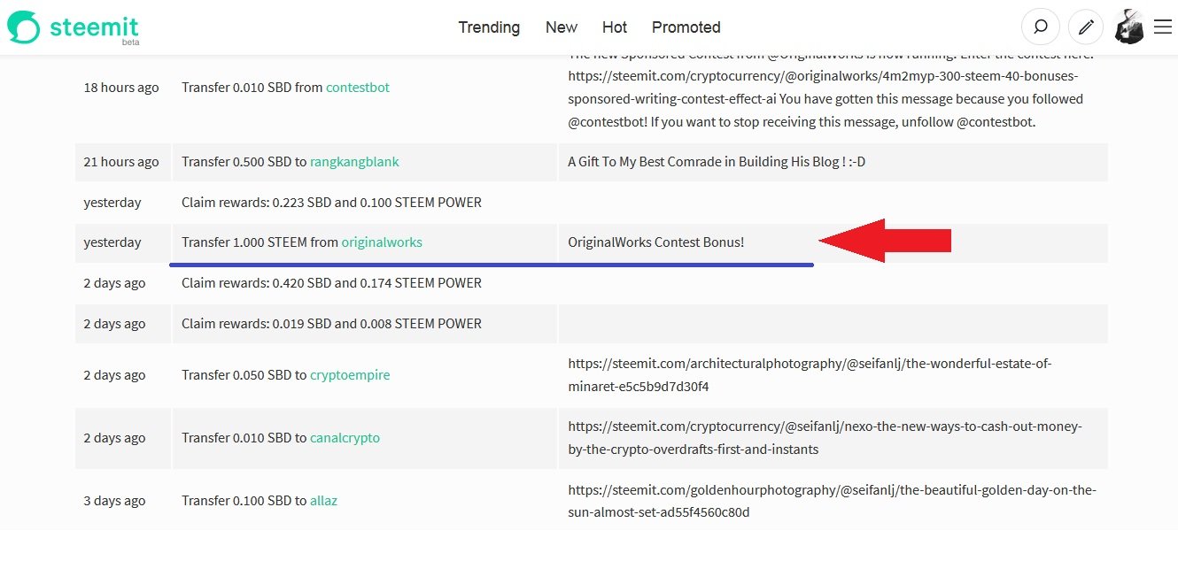Actually, after following some contests on @steemit, such as the popular one organized by @originalworks and provided well reward as the price (gift). I follow the contest for about two times yesterday, meanwhile I'am not the lucky one at the end of announcement, at least I got included in 100 of choosed to be received a bonus contest which there I got 1 Steem 😁. Its amazing!