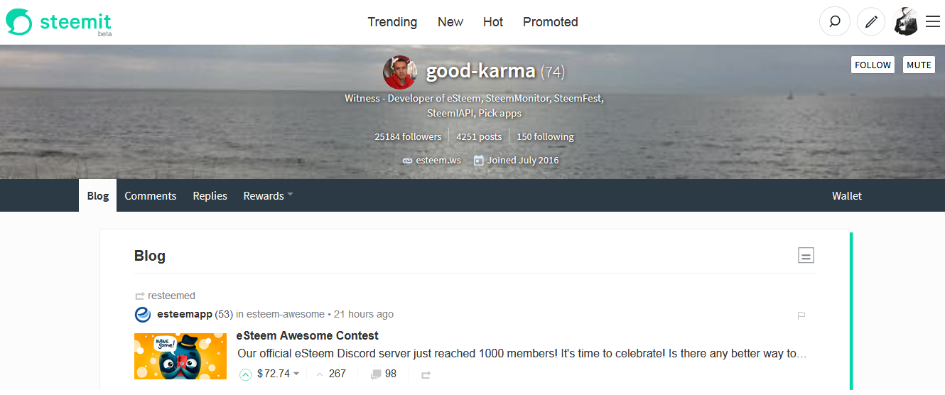 @good-karma was the creator of the @esteemapp and he was give all his best contributions to the @steemit platform, you can follow him and get some good assist by using @esteemapp through the mobile phone.