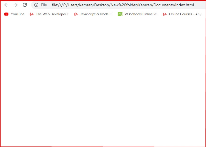 File 'ımızı Chrome Browser 'ində açdıqdan sonra boş bir HTML Web səhifəsi görəcəyik . Artıq biz bu səhifəyə yazılar yazmağa , effektlər verməyə başlaya bilərik :