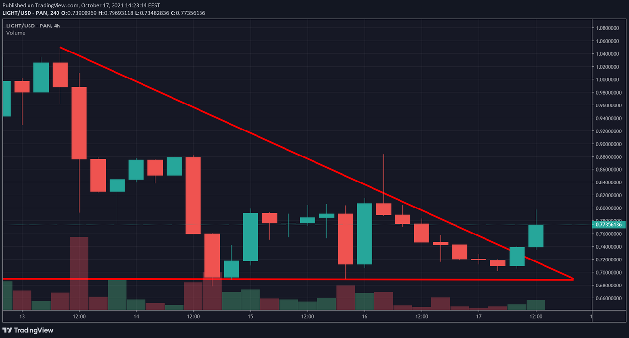Lightning (PancakeSwap: LIGHTUSD) has broken out of the triangle pattern in the four-hour chart.