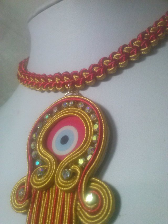Dare to Learn with me! Step by step tutorial, Mano Hamsa or Hand of Fatima in a pendant elaborated under the soutache technique and with my personal touch, Model 3!!!