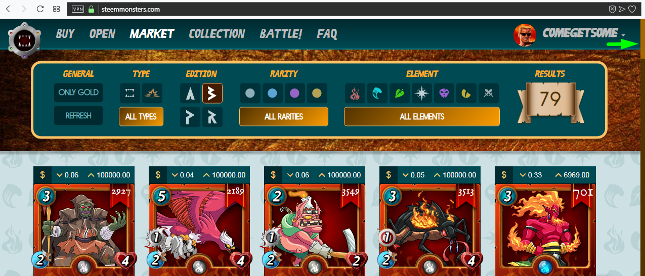 Steem Monsters Collection & Market tabs: lacks of pinned filter menu