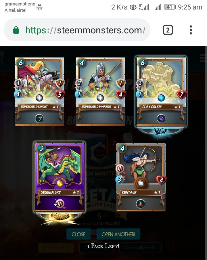 Steemmonsters node issue resolved ° Got my first legendary card and it's SELENIA SKY 😍