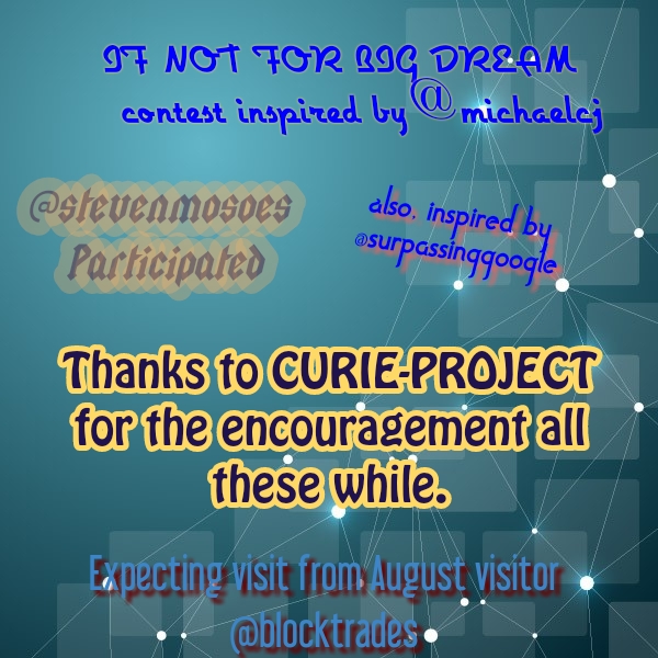 If not for big dreams, I won't be on this platform of great unending opportunities.